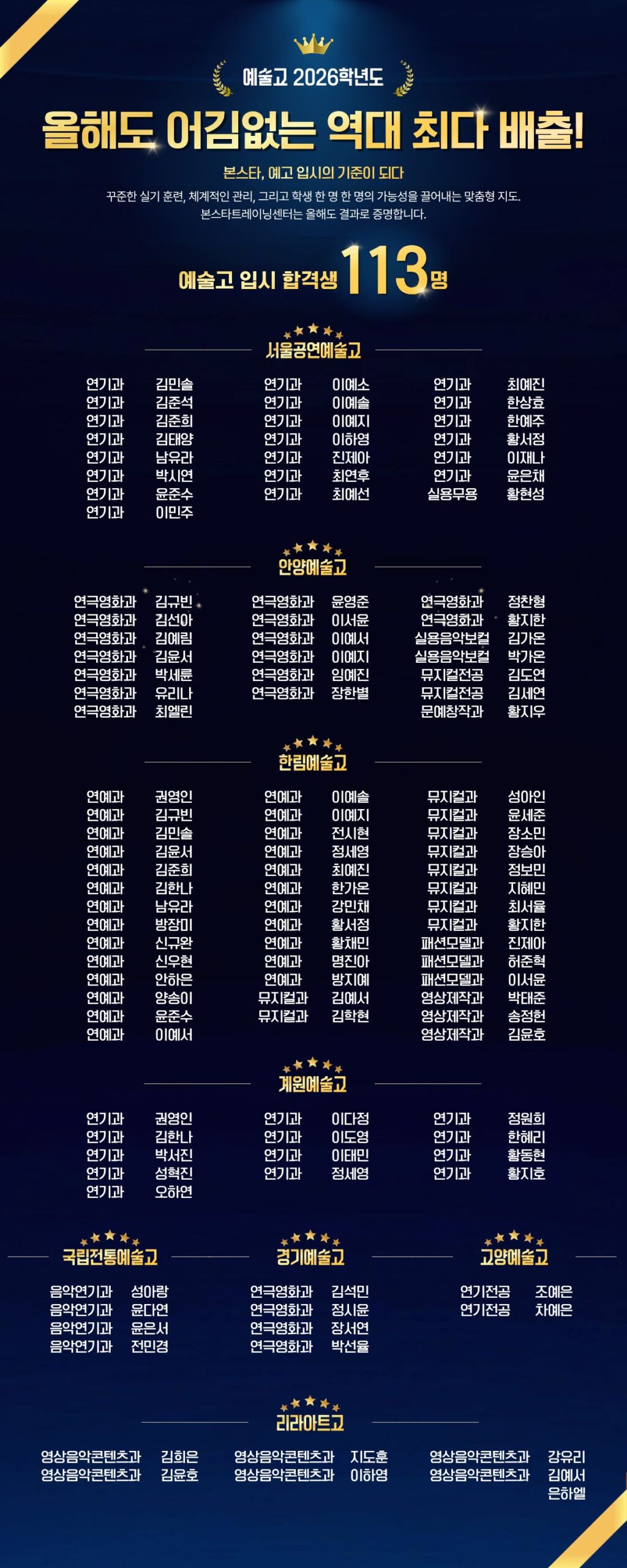 “예고 입시는 조기 준비가 핵심입니다. 중학생 시기부터 체계적인 교육을 받으면 예고 진학은 물론, 대학 입시까지 안정적으로 준비할 수 있습니다.