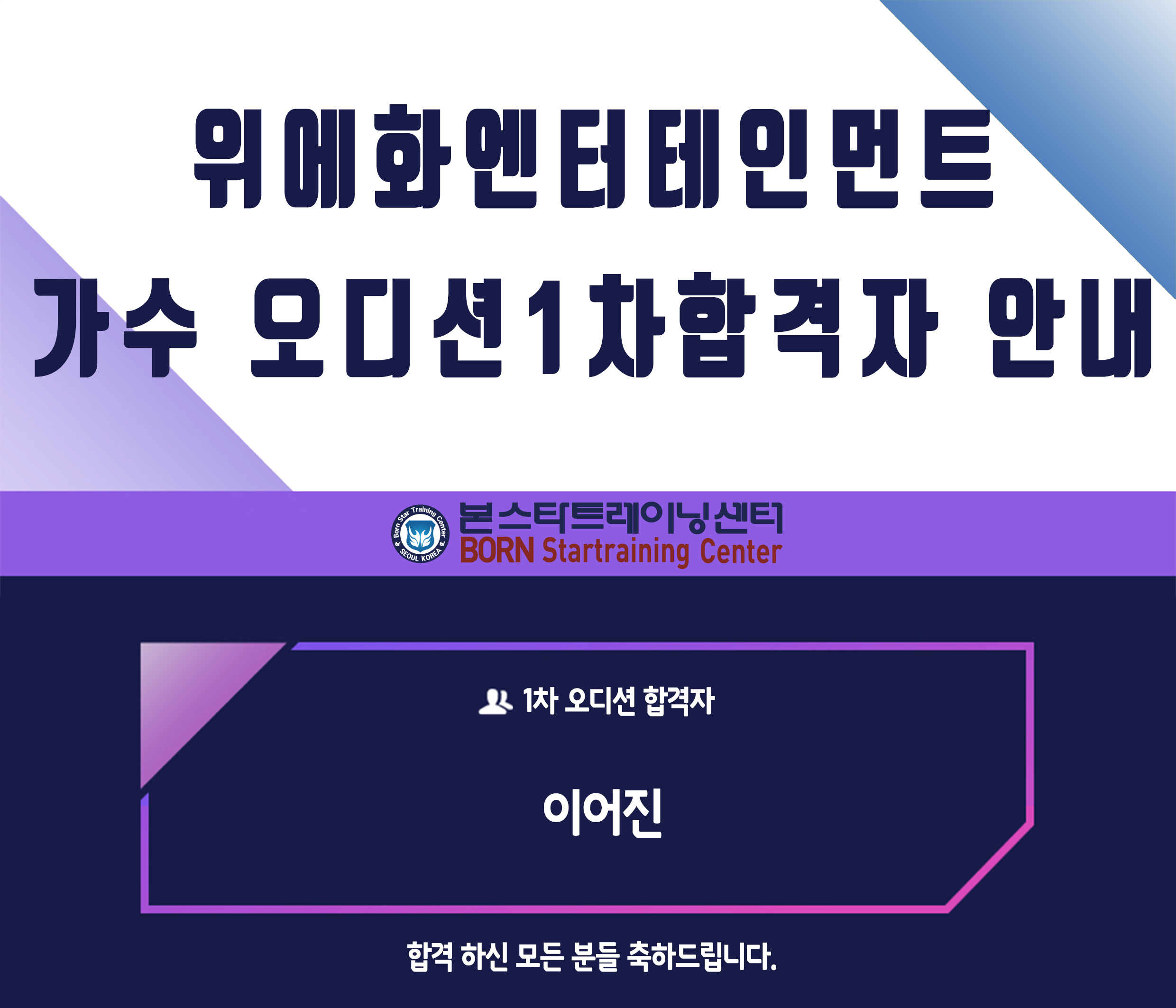☆ 위에화엔터테인먼트 신인가수 오디션 1차 합격자 발표 안내