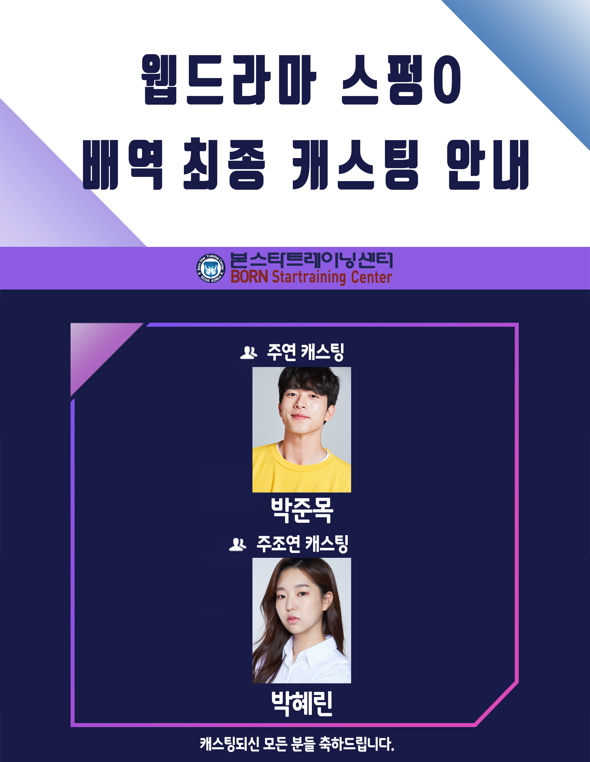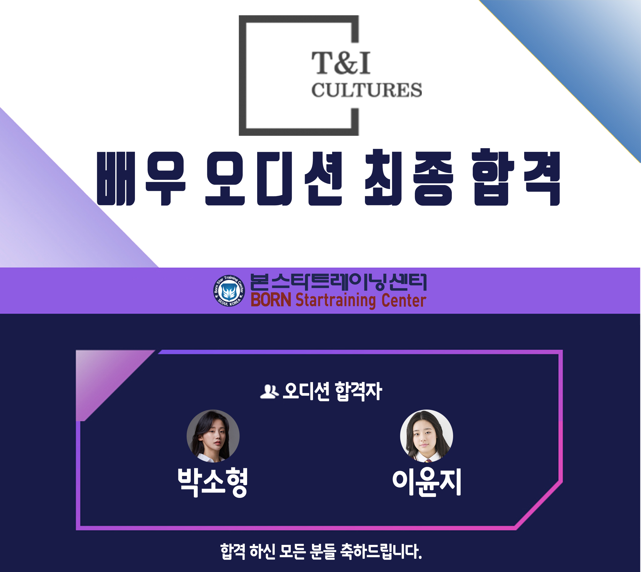 ☆ T&I CULTURES 신인 배우 오디션 최종 합격자 안내