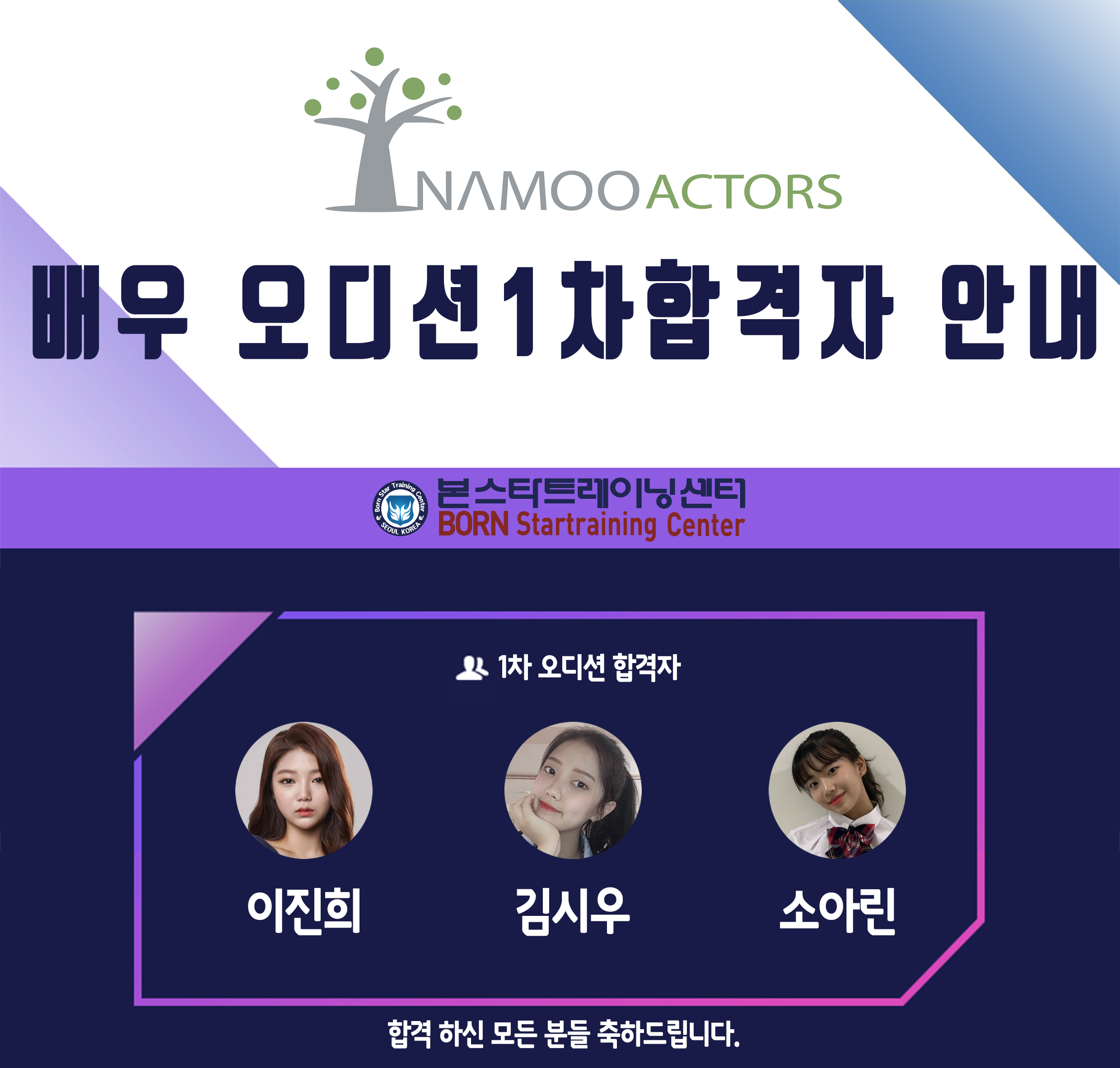 ☆나무액터스 신인배우 오디션 1차 합격자 안내