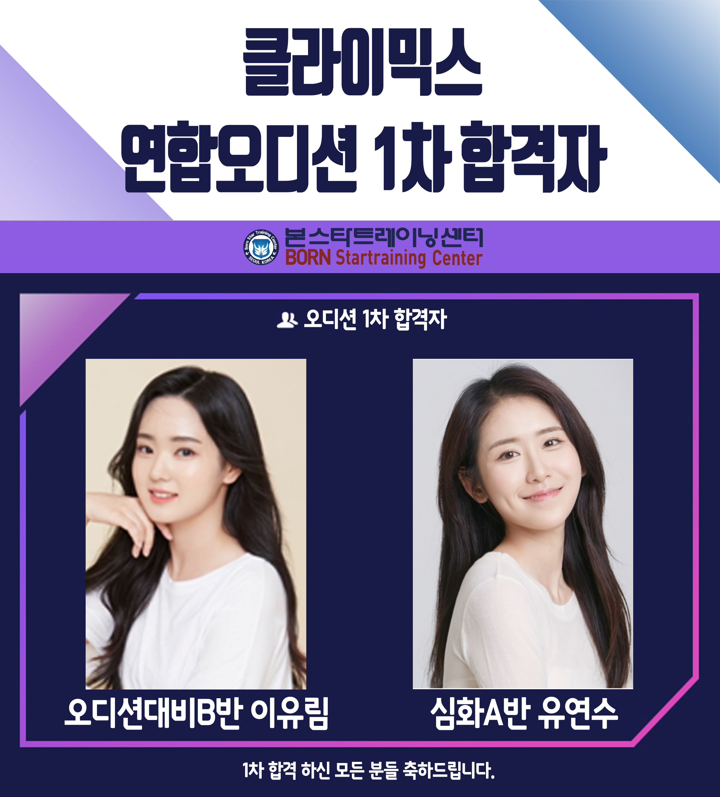 ☆ 클라이믹스 신인배우 1차 오디션 합격자 안내
