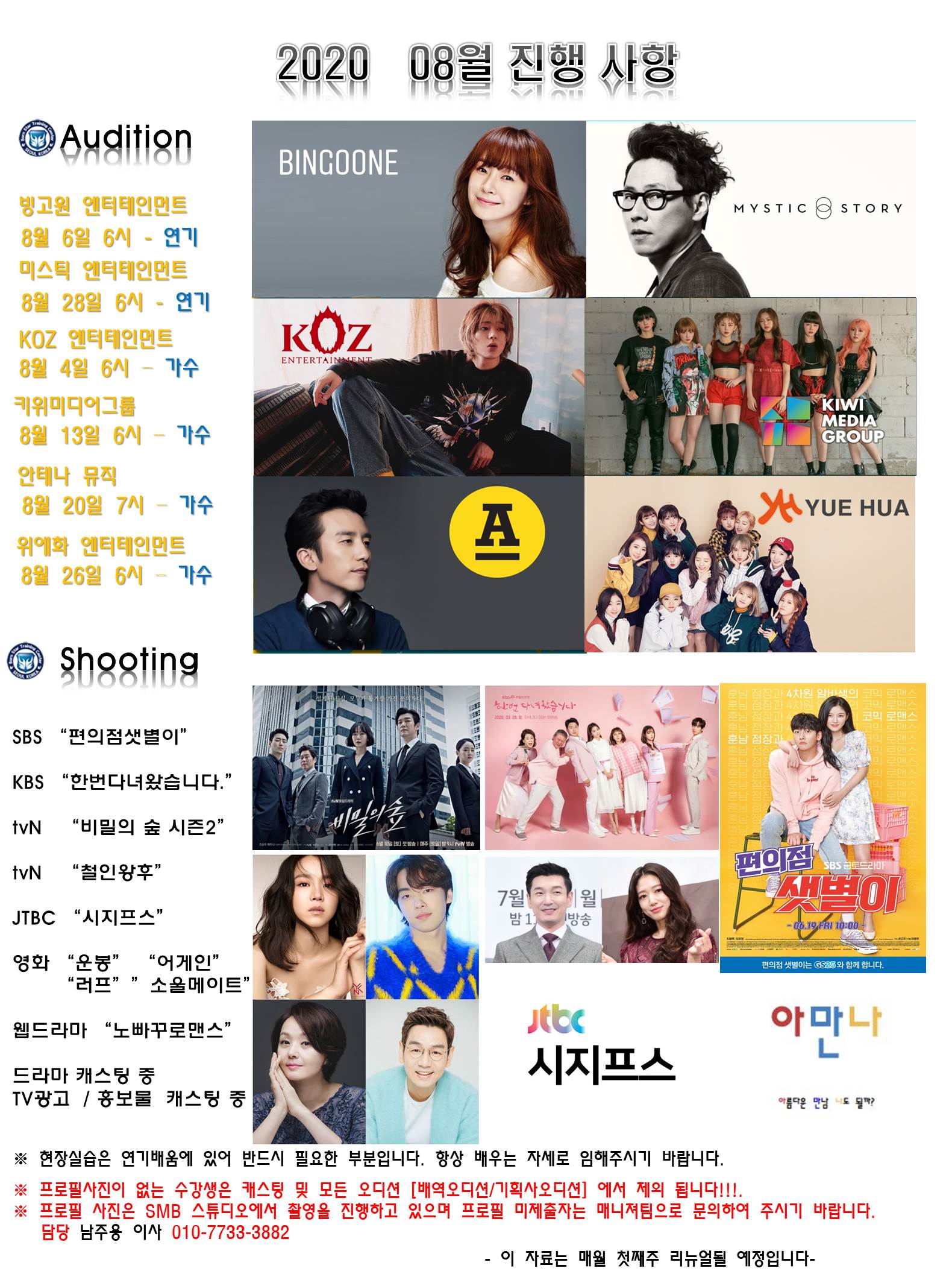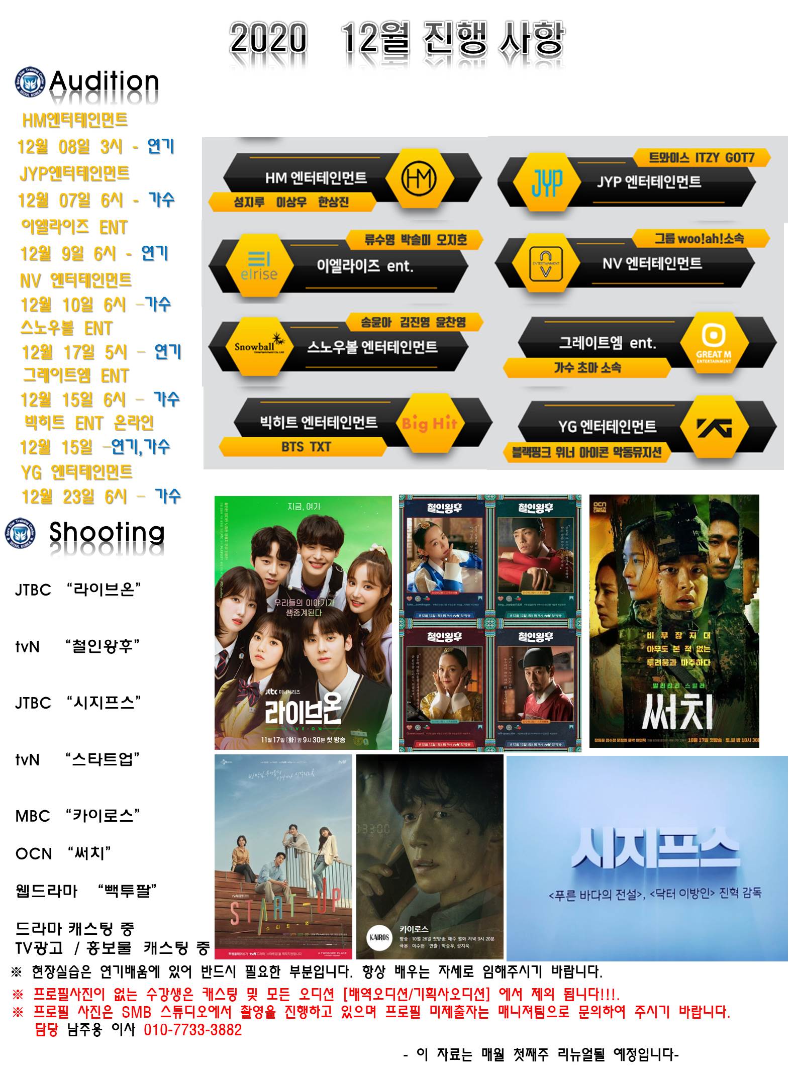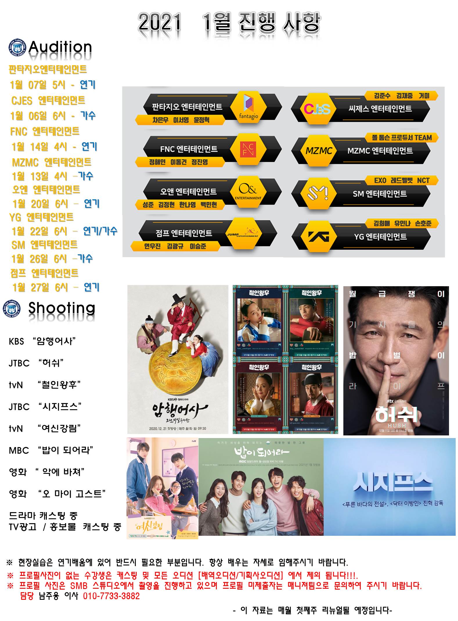 정기적인 기획사 내방 오디션과 실시간 캐스팅 정보를 확인하세요.”