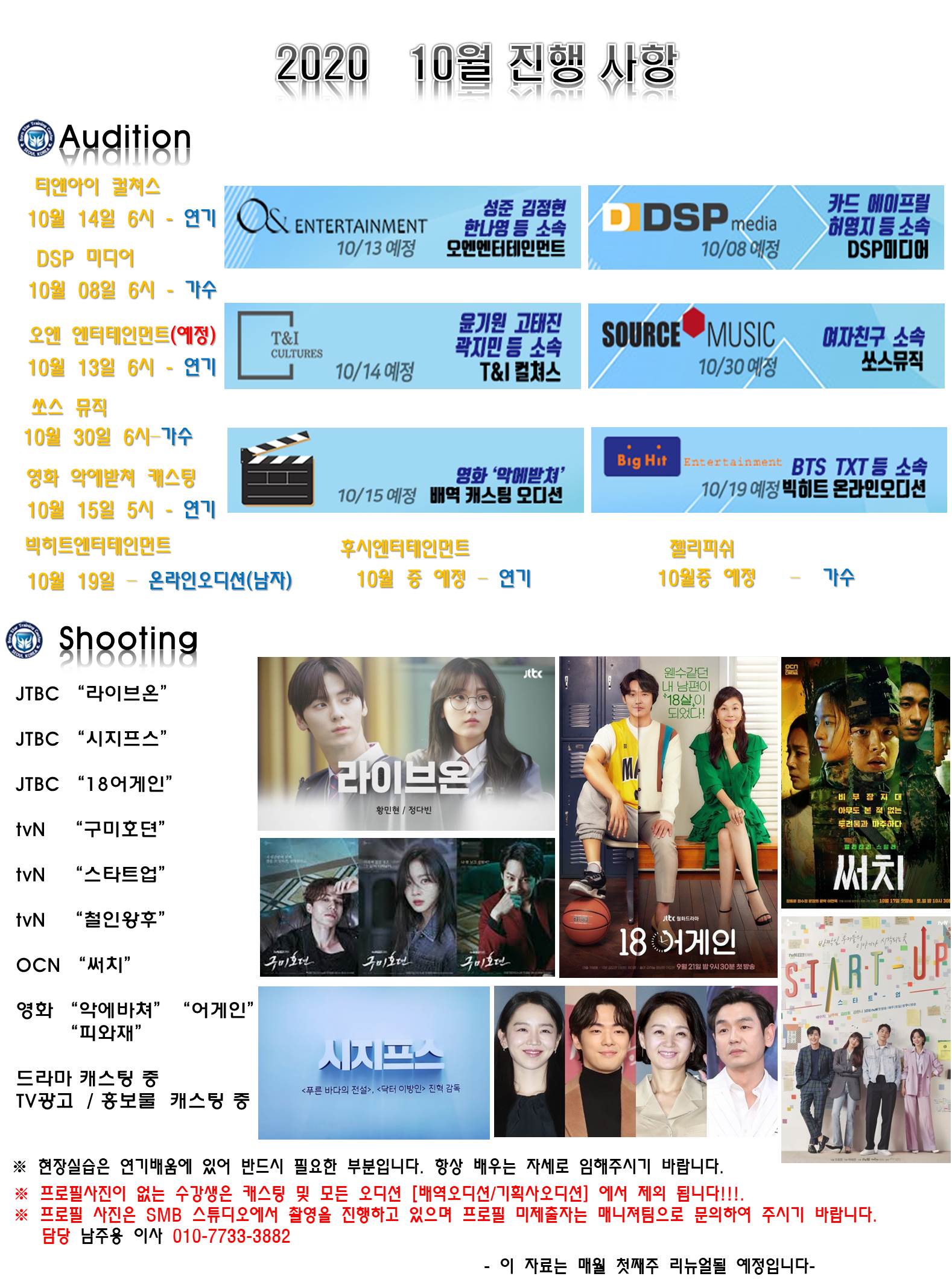 ★본스타트레이닝센터 10월 오디션정보★