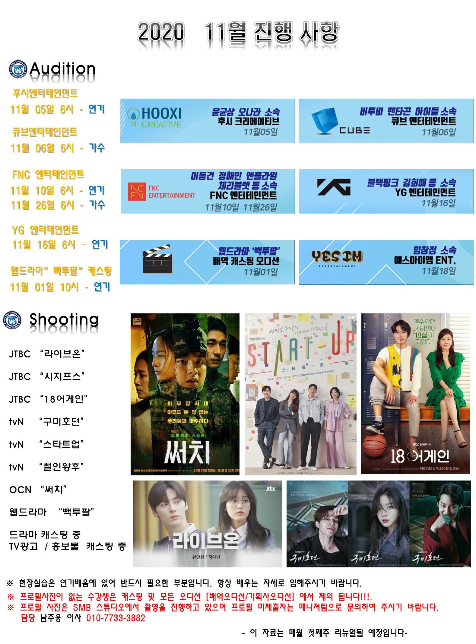 ★본스타트레이닝센터 11월 오디션정보★